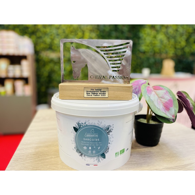Offrez à votre cheval une solution naturelle et innovante avec notre complément SARCOÏDE. Récompensé par le Prix de l'Innovation en 2023, ce complexe de phytothérapie Bio unique a été conçu pour soutenir l'organisme face aux excroissances cutanées (sarcoïdes, verrues) grâce à une action profonde et régénératrice.